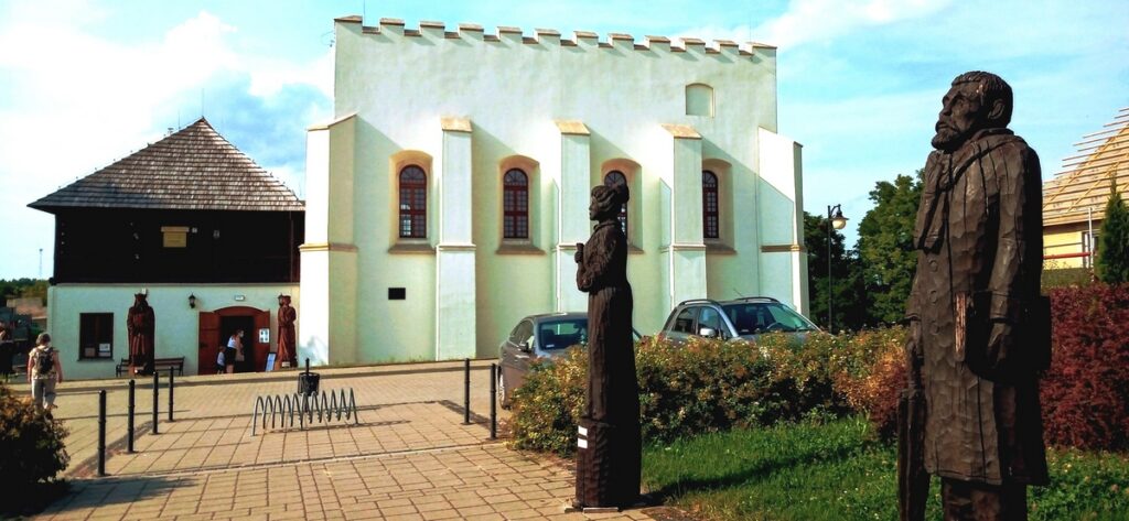 Synagoga pochodzi z wieku XVI. Obecnie mieści się tu bez wątpienia ciekawe muzeum związane z kulturą żydowską. Ponieważ chcemy wejść do środka musimy przejść przez alejkę, wzdłuż której ustawione są drewniane pomniki zasłużonych Polaków. Budowla jest nieco siermiężna, ale musimy pamiętać, że pełniła funkcje obronne, co tłumaczy jej wygląd.